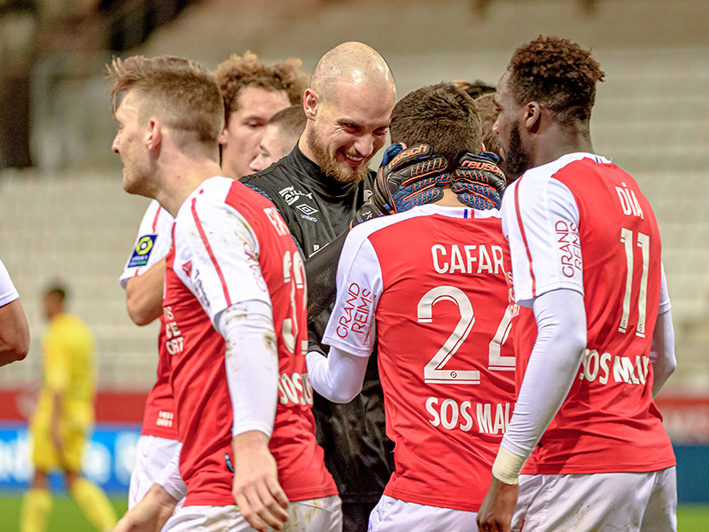 Et il ne faut que trois minutes à l’attaquant pour trouver l’ouverture et inscrire son premier but sous le maillot rémois ! Sur une touche, le joueur de tout juste 22 ans rentre dans l’axe, contrôle pied droit et trompe Johnsson du gauche d’une frappe soudaine (2-0, 69ème) ! Largement félicité par ses coéquipiers qui ont accouru vers lui, Boulaye Dia permet aux Stadistes de faire le break. Pablo Chavarria prend alors sa chance de loin mais Johnsson est sur la trajectoire (77ème). Mais les Guingampais n’ont pas abdiqué et reviennent dans la partie sur penalty. Après avoir eu recours à la VAR, M. Hamel accorde un penalty pour une faute de Xavier Chavalerin sur la ligne de la surface. Edouard Mendy plonge du bon côté mais Thuram avait bien tiré et trouve les filets (2-1, 81ème)… Un but qui relance la fin de match et laisse les Rémois sous la pression des Bretons qui cherchent à accrocher le nul. Mais les hommes de David Guion ne cèdent pas et vont chercher les trois points. Prochain rendez-vous dans une semaine à Marseille…